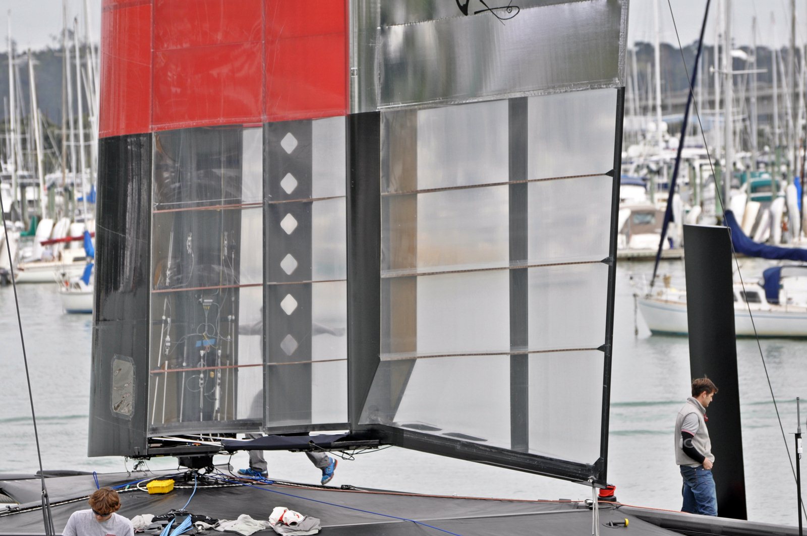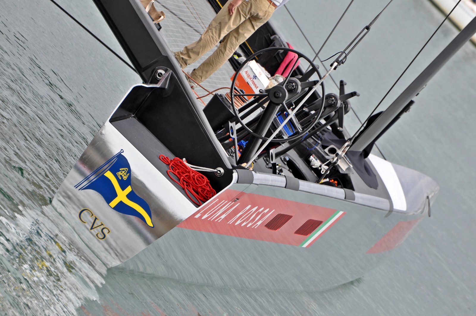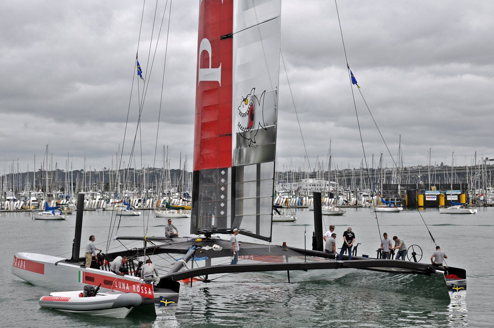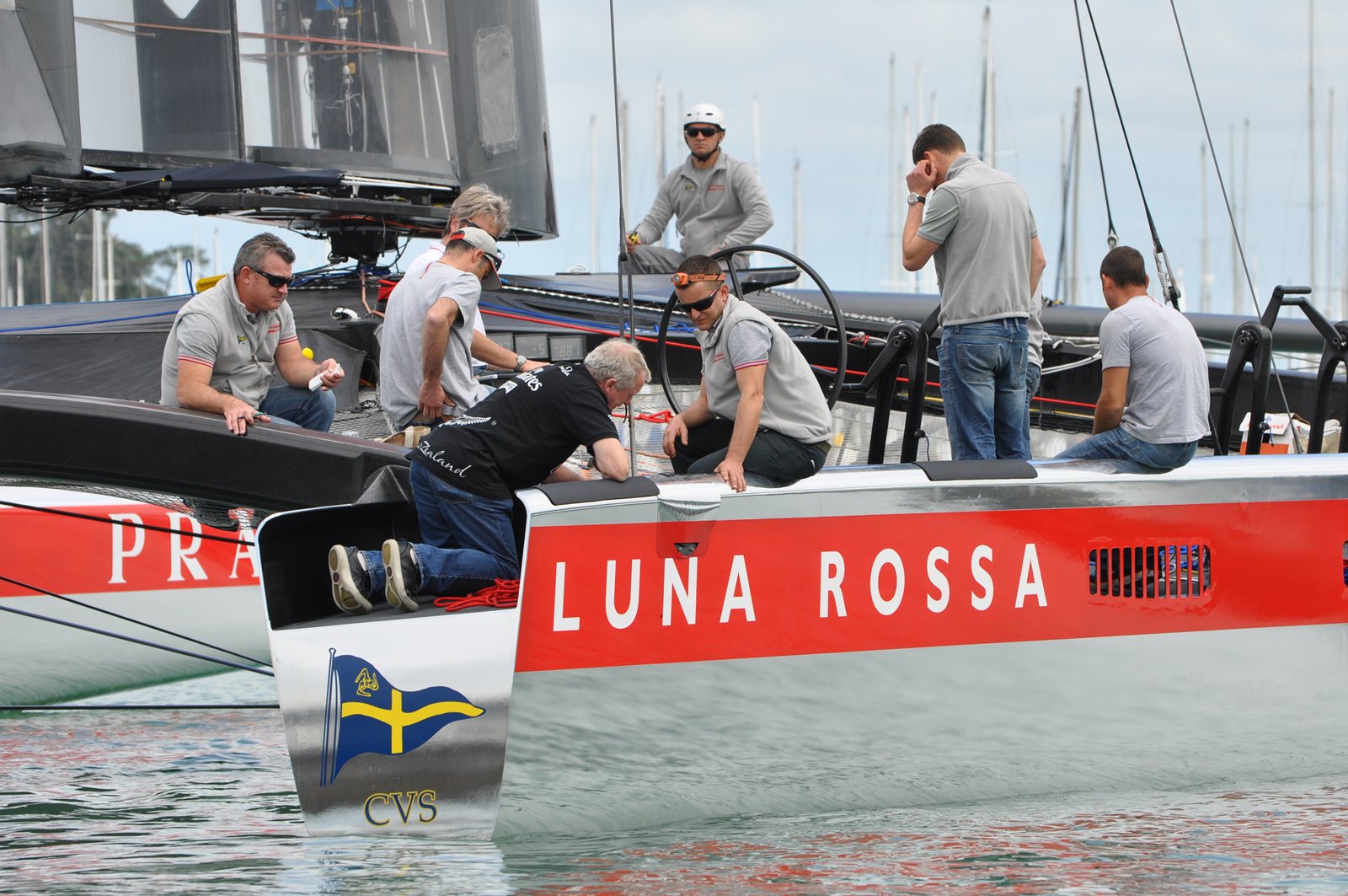 Under the watchful eyes of French multihull guru Franck Cammas and a couple of Emirates Team New Zealand technicians, the Luna Rossa crew was busy carrying out the final load tests on their brand new AC72. If all goes according to plan and barring any unexpected problems, the team will take Sunday off and then embark on a busy week that will see the Italian yacht taken for her maiden sail on Thursday.