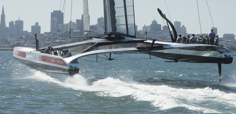 [Source: Luna Rossa] This morning the Luna Rossa AC72 sailed for the first time in San Francisco in the bay where the Louis Vuitton Cup and America’s Cup regattas will take place starting July 7th.