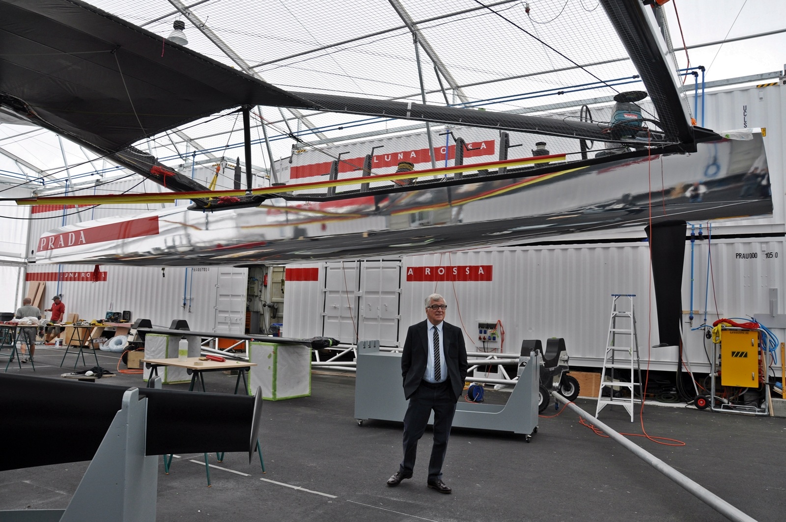 Patrizio Bertelli: No, we’ll put everything on a cargo ship and take it. The boat and the wing will have to be transported in one piece each, the rest in containers.